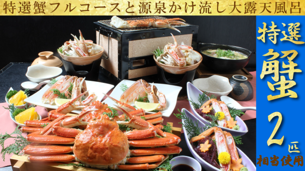 特選蟹フルコース【蟹2匹相当使用】と源泉かけ流し大露天風呂