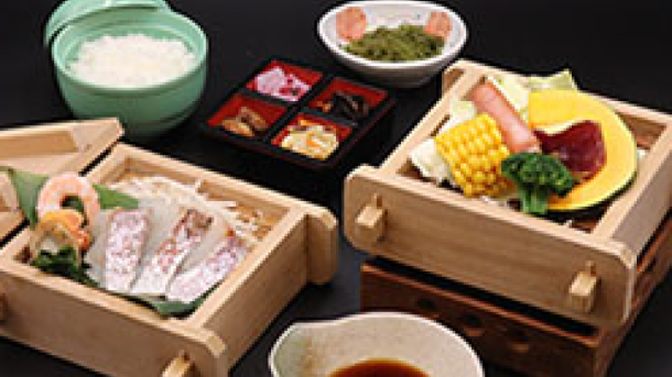 お買い物、そして昼食に真鯛のセイロ蒸しを!