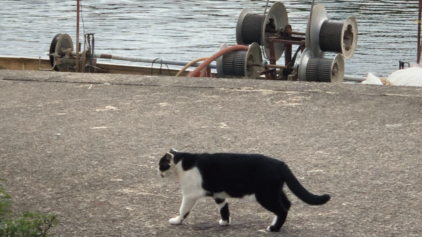 路地や港で、気ままに過ごす猫たちとの出会いも、沖島ならではの楽しみ。