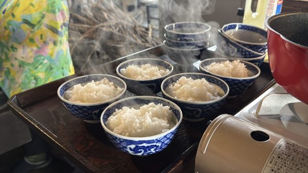 お弁当籠を各人にお貸しします。ご飯 or おにぎりを入れて、お茶を持って、茶畑や清流のほとり等、好きなスポットでゆっくりランチをお楽しみください。ちなみに、おくどさんを使っての炊飯は、全員参加型! 里山の暮らしという非日常を楽しみましょう。