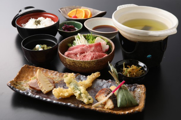 ・滋賀県信楽町の名産「朝宮茶しゃぶしゃぶ膳」の昼食付き!お茶の香りとともに味わう、ここならではのランチを堪能。