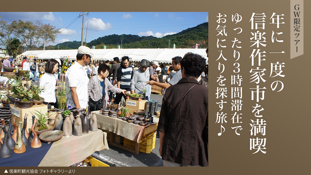 年に一度の信楽作家市と美味しいお茶の魅力を満喫する、特別な日帰りツアーです。