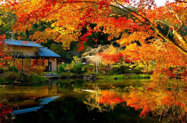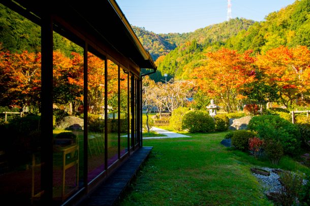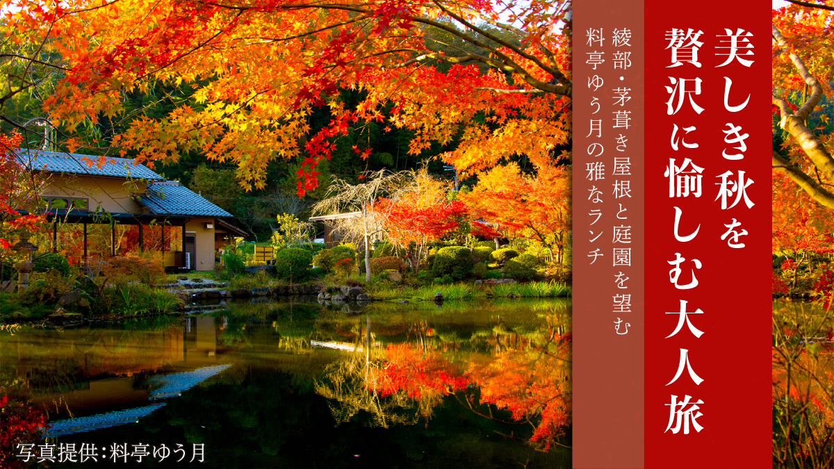 紅葉の美しさを、かやぶき屋根の古刹と、四季の美を映す料亭ゆう月でこころゆくまでお楽しみいただけます。