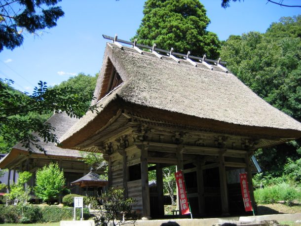 【岩王寺】 通常非公開の貴重な本堂を、住職さま自らご案内。 かやぶき屋根と紅葉が織りなす風景は、まるで時が止まったような静寂美。 |