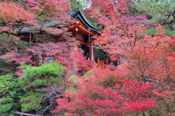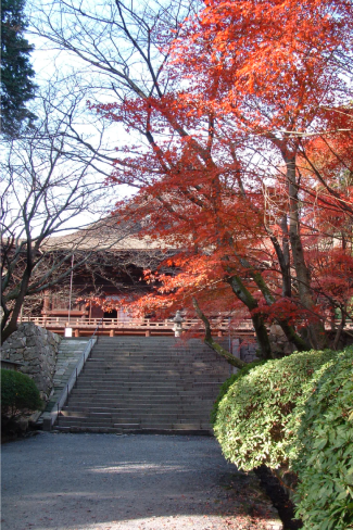 朝の澄んだ空気の中、歴史ある境内に咲き誇る紅葉をゆったりとご鑑賞。