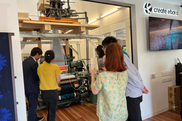 create ebara silk & cafeでは、丹後シルクの歴史や製造工程を学びながら、プロの織り手とともに実際の織機を動かす貴重な体験ができます。