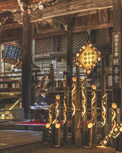 ・善峯寺の境内を彩る竹あかりライトアップ