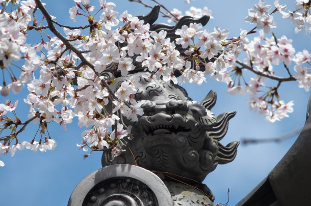 境内に咲く千眼桜は、知る人ぞ知る春の見どころの【大原野神社】