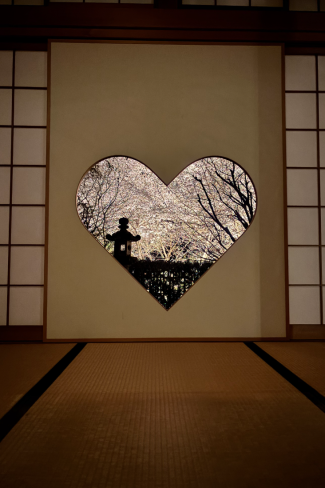 夜はライトアップされた桜が境内をやさしく照らし、昼間とはまったく異なる、幻想的な世界が広がります。